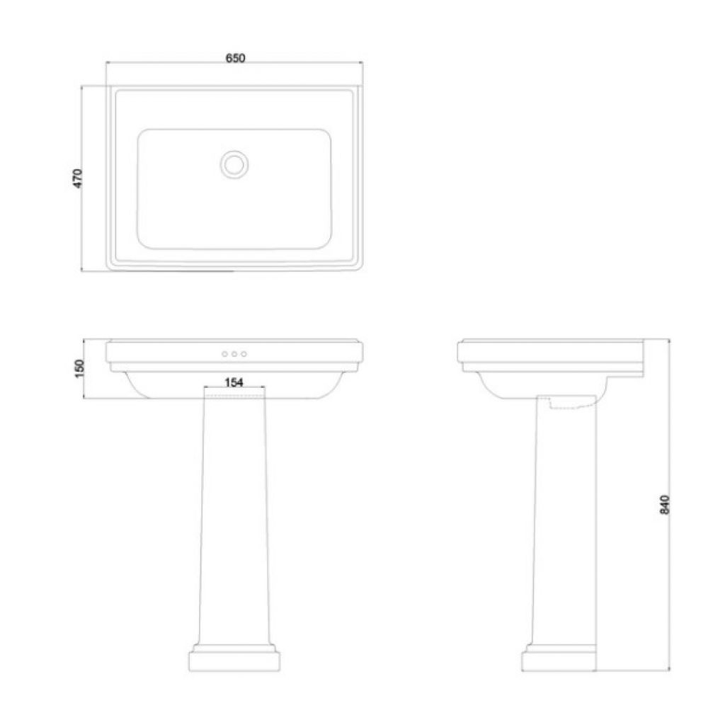 BURLINGTON Riviera S Umywalka kolumnowa vintage retro zaokrąglona 65 cm