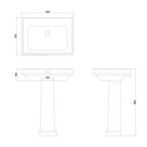 BURLINGTON Riviera S Umywalka na postumencie vintage retro zaokrąglona 58 cm