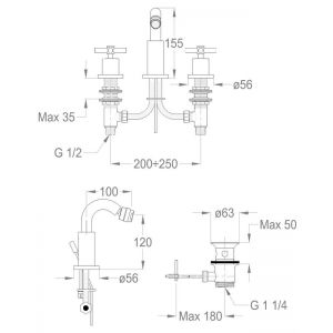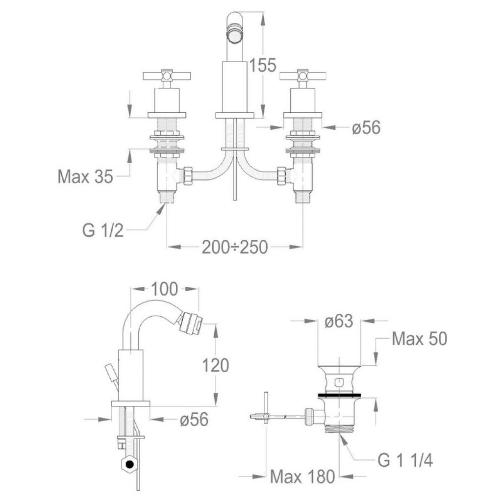 Ekskluzywna bateria bidetowa znanej i cenionej marki FIR ITALIA z kolekcji Cora, 3 otworowa, z korkiem pop-up, dostępna w chromie - made in Italy...