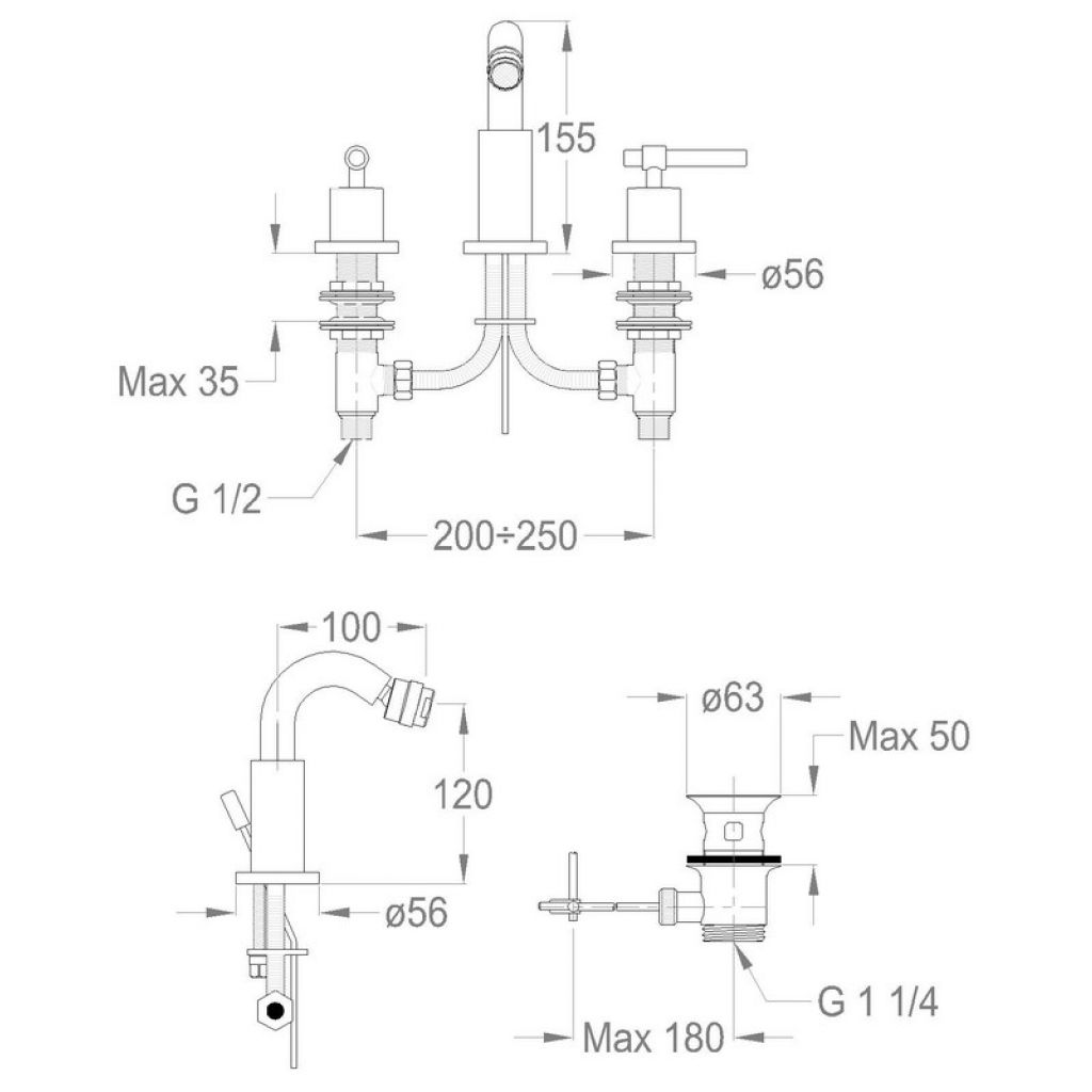 Ekskluzywna bateria bidetowa znanej i cenionej marki FIR ITALIA z kolekcji Cora, 3 otworowa, z korkiem pop-up, dostępna w chromie - made in Italy...