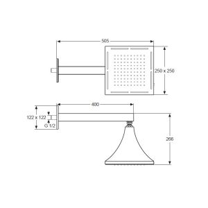 Wyjątkowa i niepowtarzalna deszczownica prysznicowa FIR ITALIA pozwoli zadowolić nawet najbardziej wysublimowane gusta klientów. Ta deszczownica prysznicowa wyposażona jest w funkcję chromoterapii(różne kolory spadającej wody) oraz w urządzenie do zdalnego sterowania deszczownicą. Wykonana jest z elementów stalowych, wyposażona w powłokę zabezpieczającą osadzaniu się kamienia. Deszczownica prysznicowa wyposażona jest również w ramię, przeznaczona jest do montażu ściennego.Dostępna w 2 kolorach wykończenia. Wymiary deszczownicy prysznicowej 250x250 mm.