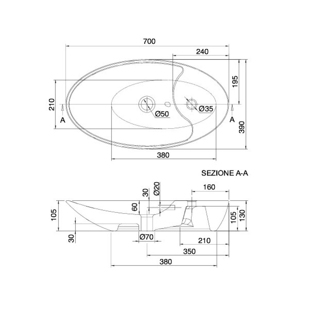 Ekskluzywna i niepowtarzalna umywalka z kolekcji Shape dostępna jest w wielu wykończeniach. Umywalka przeznaczona jest do montażu na blacie, z 1 otworem na baterię, a jej wymiary to 70x39 cm. Oryginalny design umywalki SCARABEO zadowoli nawet najbardziej wysublimowane gusta klientów.